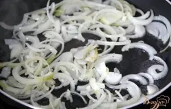 Нарезать полукольцами лук. Рахогреть масло и тушить на среднем огне до прозрачности.