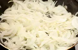 Поверх соуса равномерно разложите лук. Чем больше лука, тем вкуснее получается.
